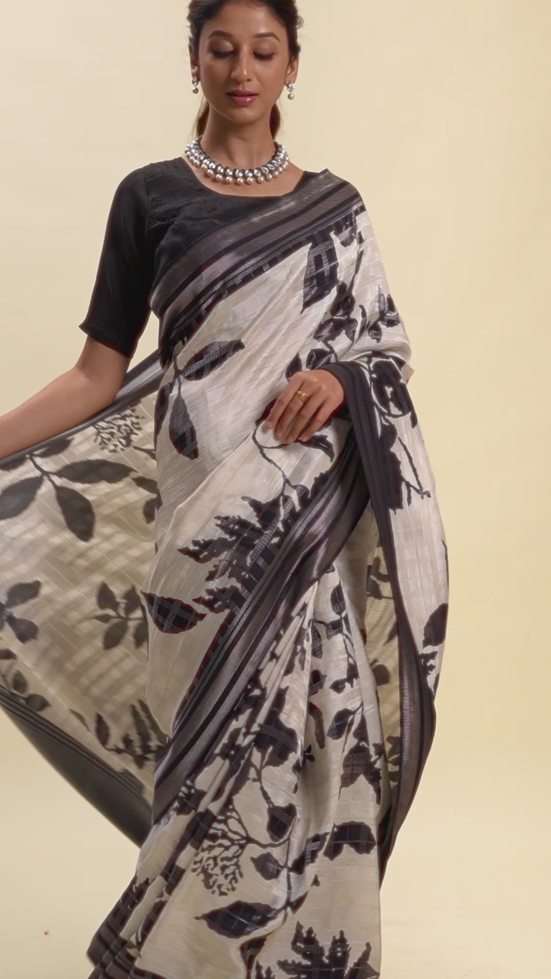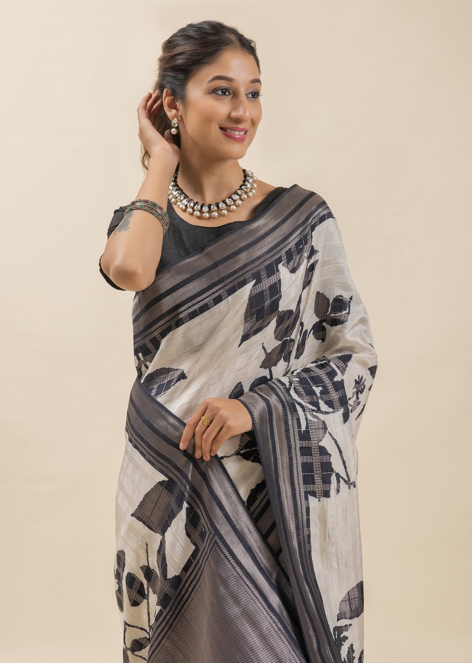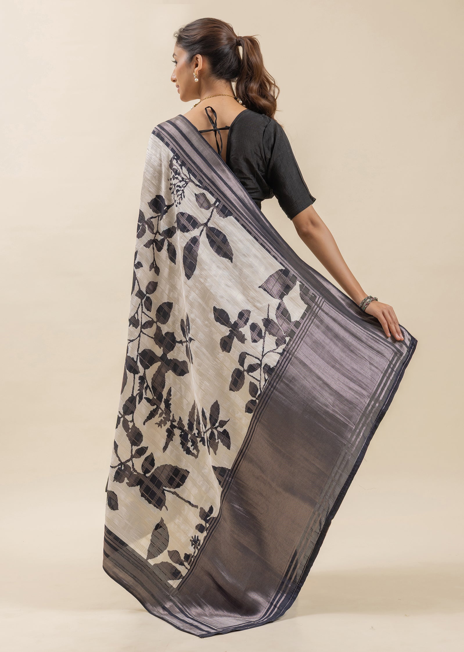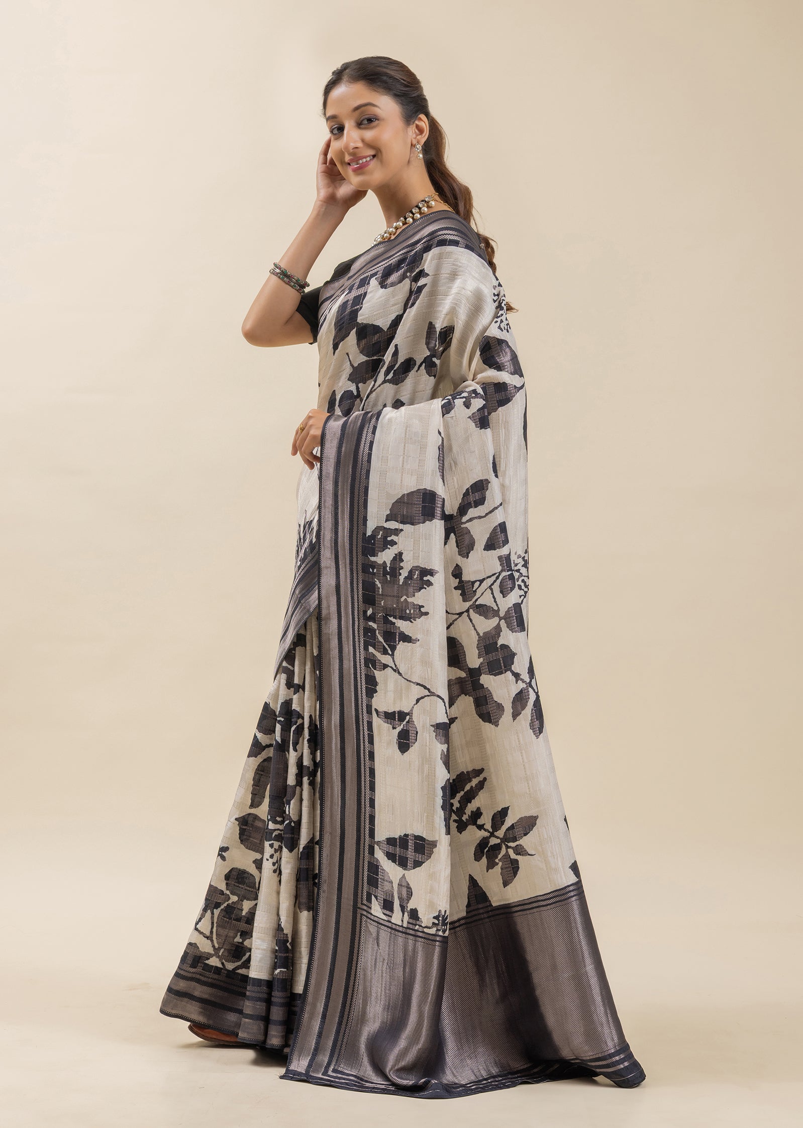 Ivory Elegance Printed Tusser Silk Saree