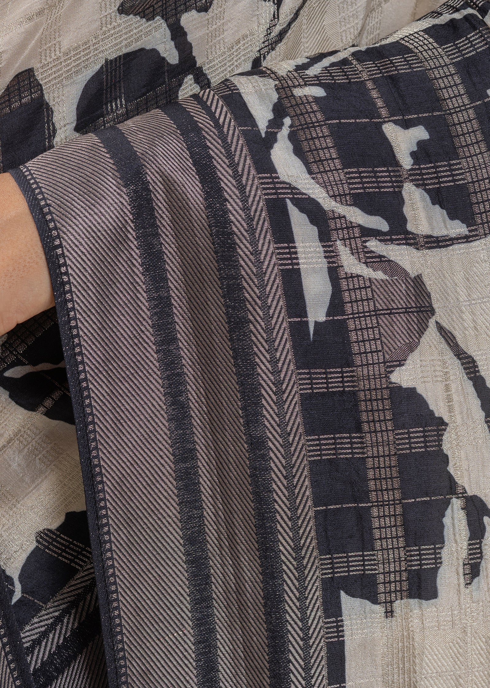Dry clean only is recommended to maintain fabric quality and color.