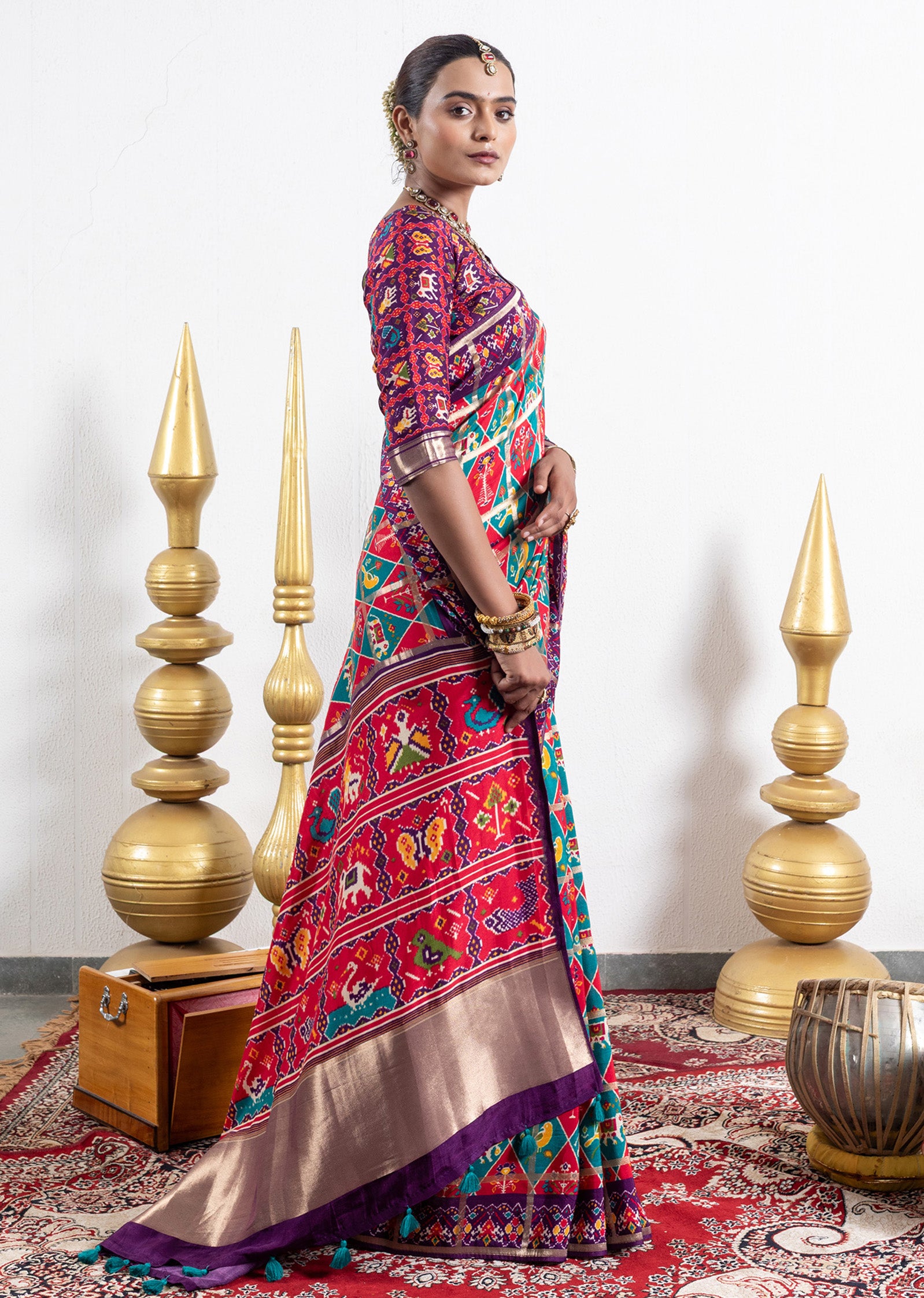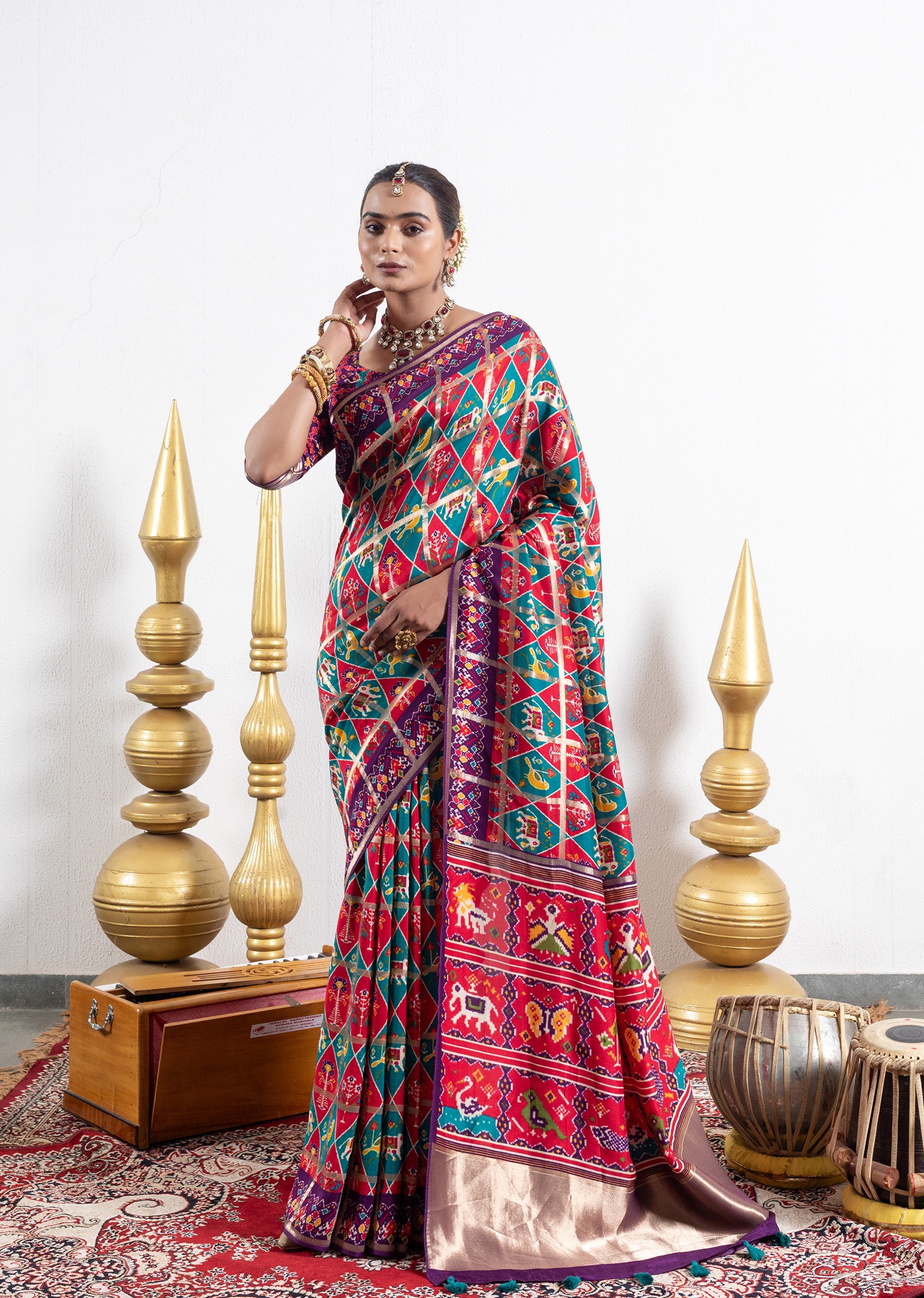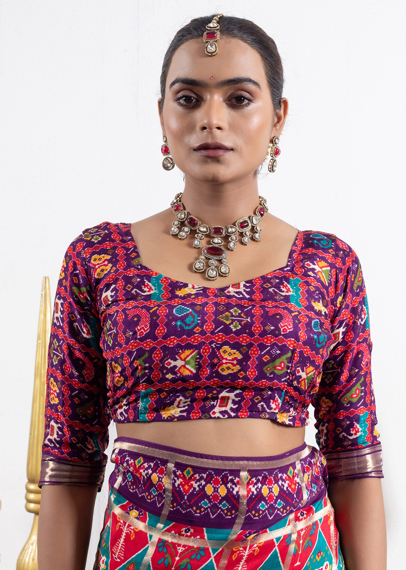 A saree that brings together traditional charm and everyday comfort. Crafted in soft, pure Dola silk, this drape features a colourful Chokda Patola print; a nod to classic weaving styles from Gujarat.