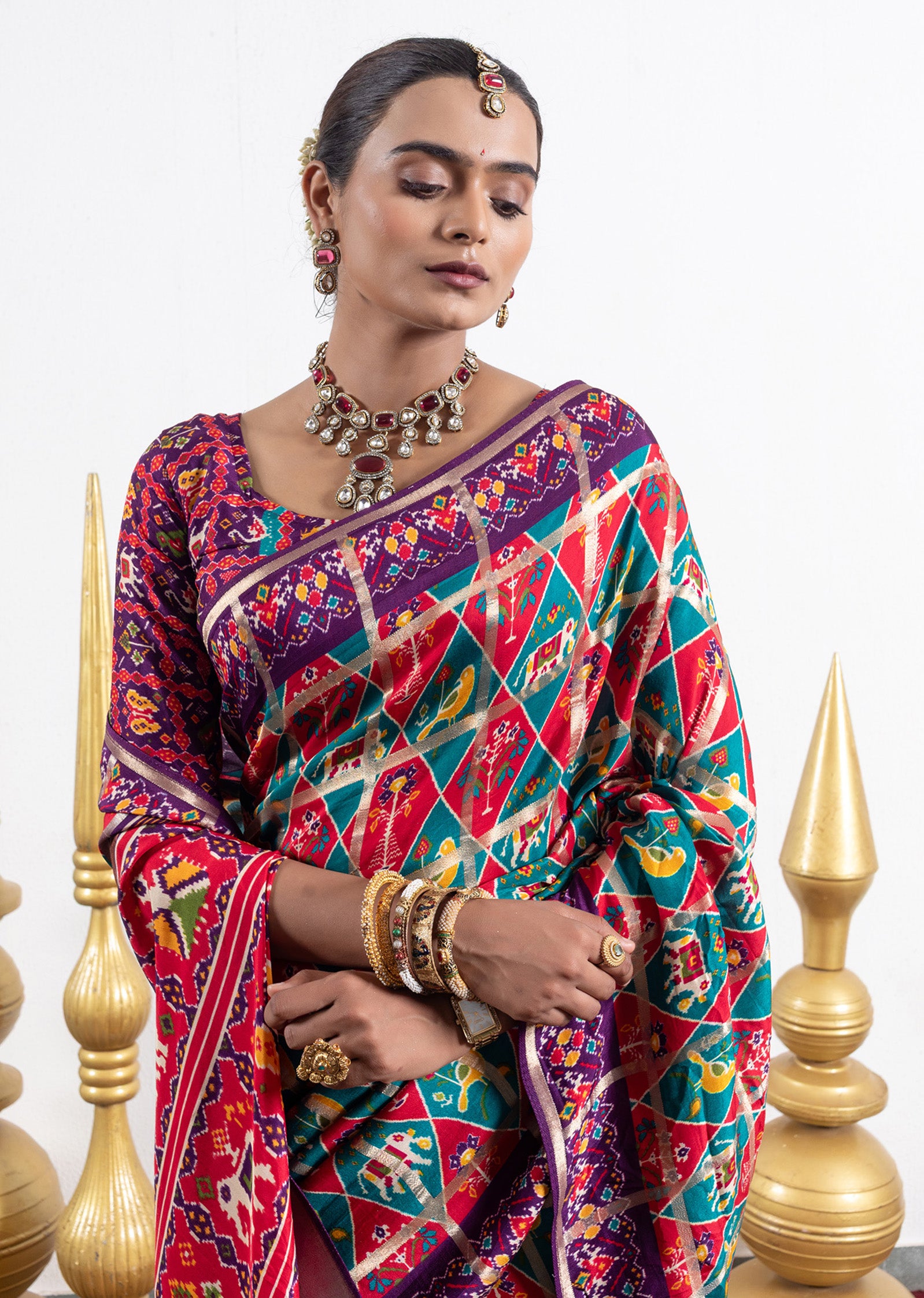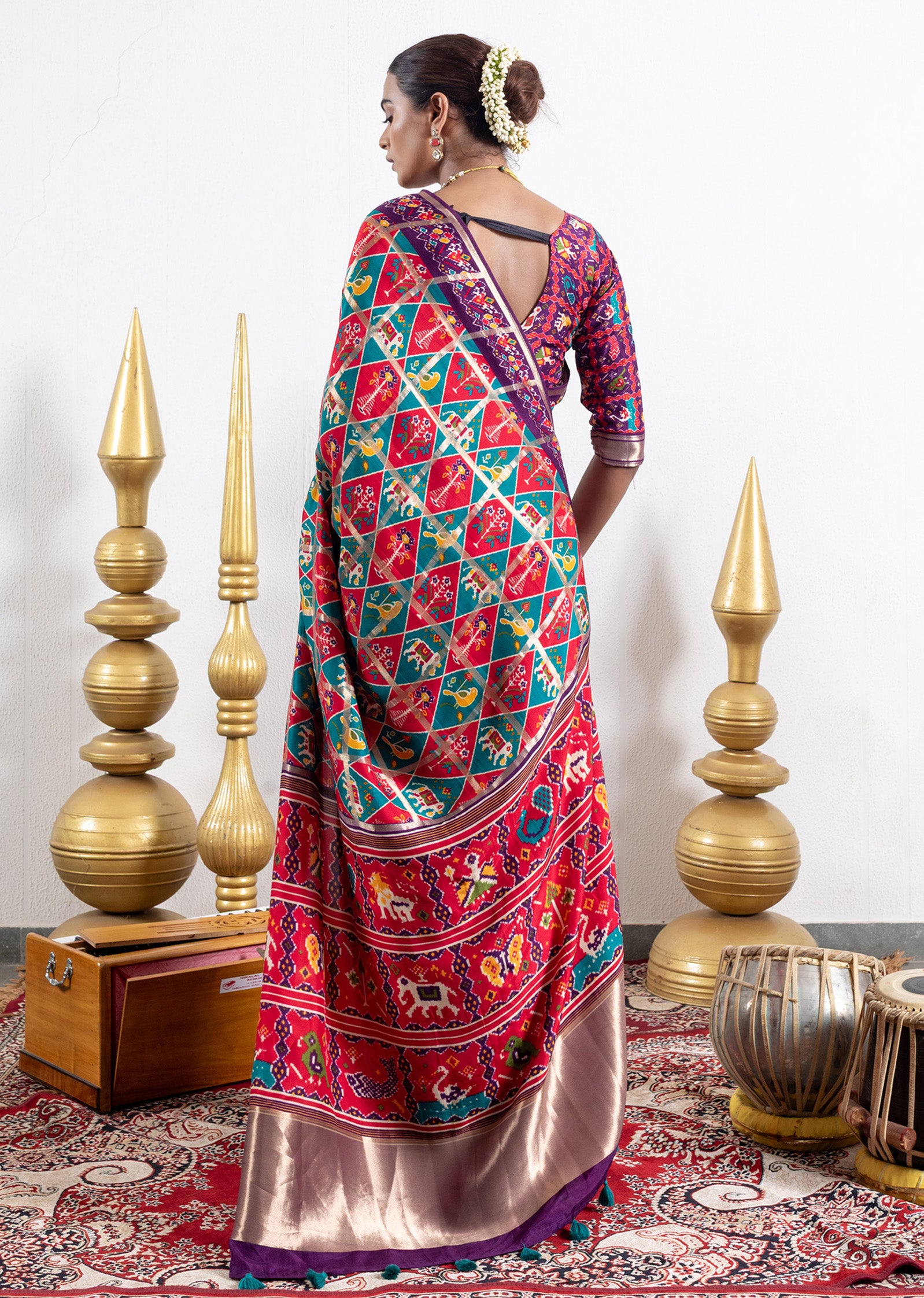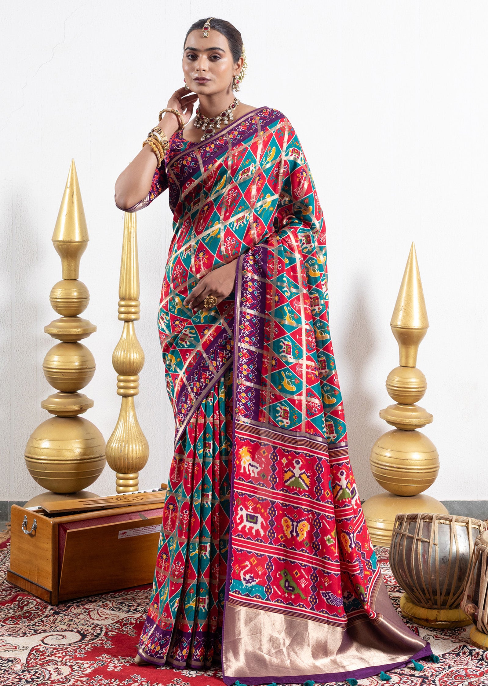 A saree that brings together traditional charm and everyday comfort. Crafted in soft, pure Dola silk, this drape features a colourful Chokda Patola print; a nod to classic weaving styles from Gujarat.